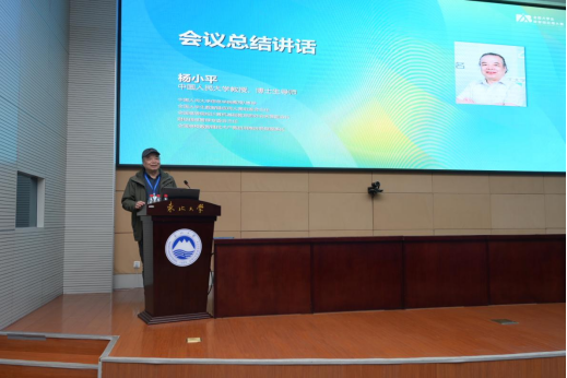 会议最后,全国大学生数智链应用大赛组委会主任杨小平教授作总结讲话,他强调数智链技术的融合发展正重构教育生态与产业格局,高等教育需主动拥抱技术变革,以此次会议和大赛为契机,深化产学研用协同合作,推动人工智能教学与数智链领域人才培养的创新发展。